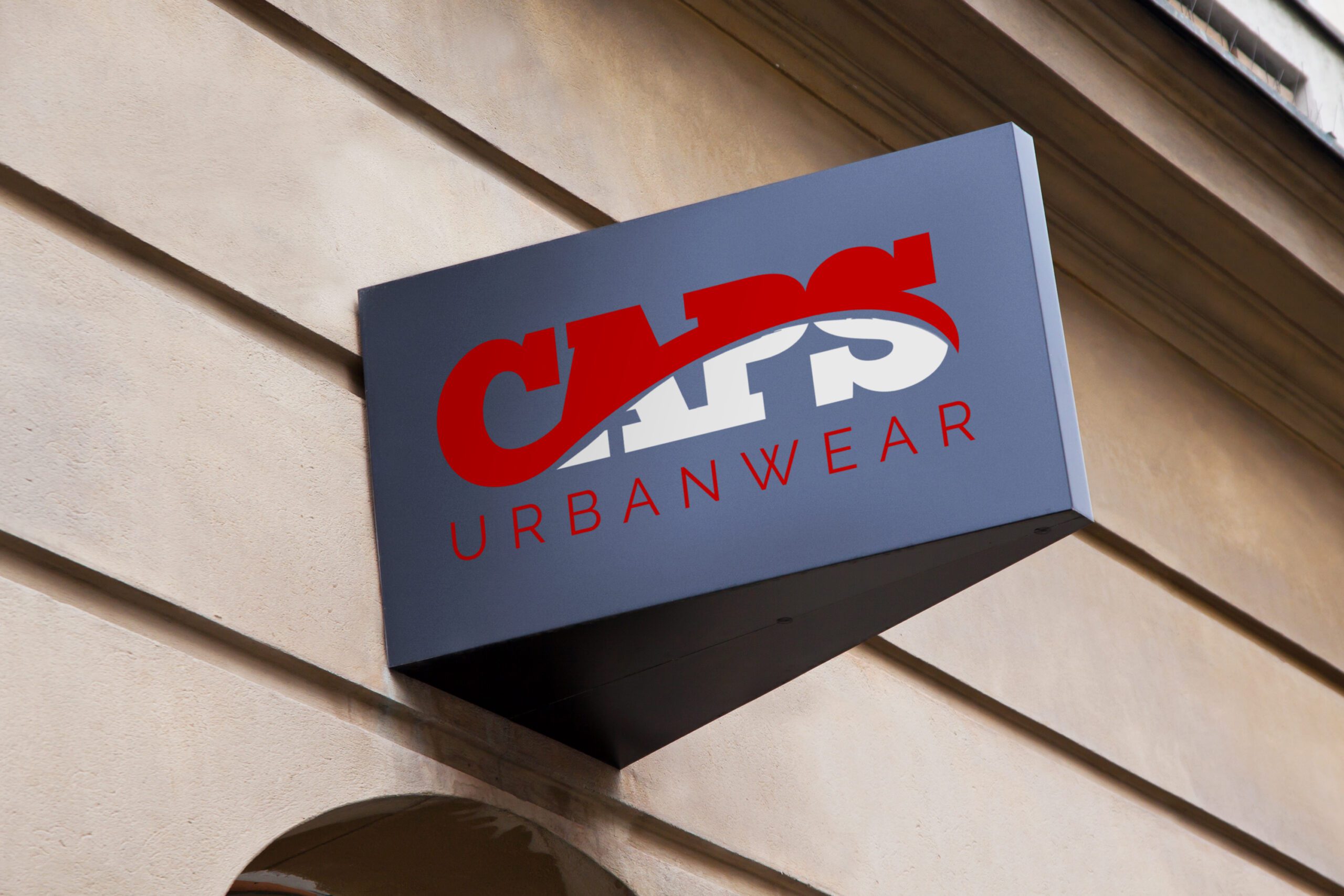 - Logo Redesign (The Iconic “C”): The second logo design (which became the definitive brand identity) is significantly more modern and impactful, perfectly capturing the “urbanwear” aesthetic. The design features a bold, chunky, slab-serif font for the word “CAPS,” conveying a sense of strength and street-style credibility. The most distinctive element is a stylized, red “cap” that sits atop and overlaps the “C,” creating a clever visual pun that directly references the company name and the idea of headwear. This “cap” element is abstract enough to feel modern and avoid a literal, dated representation. The way the cap interacts with the white space of the “C” adds dynamism and visual interest. The “APS” is cleverly integrated beneath the curve of the cap, creating a compact and unified design. The overall color palette of red and black is classic, bold, and attention-grabbing, suitable for a brand targeting a younger, fashion-forward audience. The design came together quickly, feeling like an intuitive and perfect fit for the brand’s new direction.